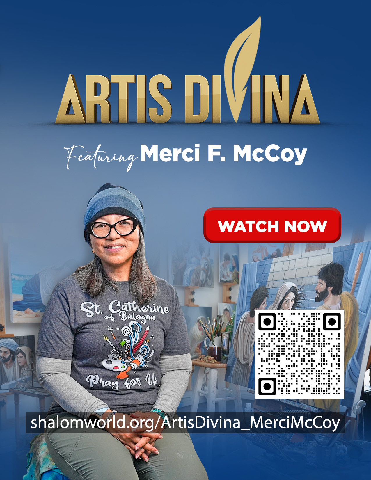 The Shalom World Artis Divina show is about artists who share their story about their inspired creations, faith journey and art rooted in faith. I am profoundly humbled and honored to be featured as one of the artists on Artis Divina. I am incredibly grateful to Shalom Media and all involved in bringing this to light. It truly is an answered prayer for my parents, † Lloyd and † Mercedes Flores, who were unceasing in their prayers for Mother Mary’s intercessions for me.