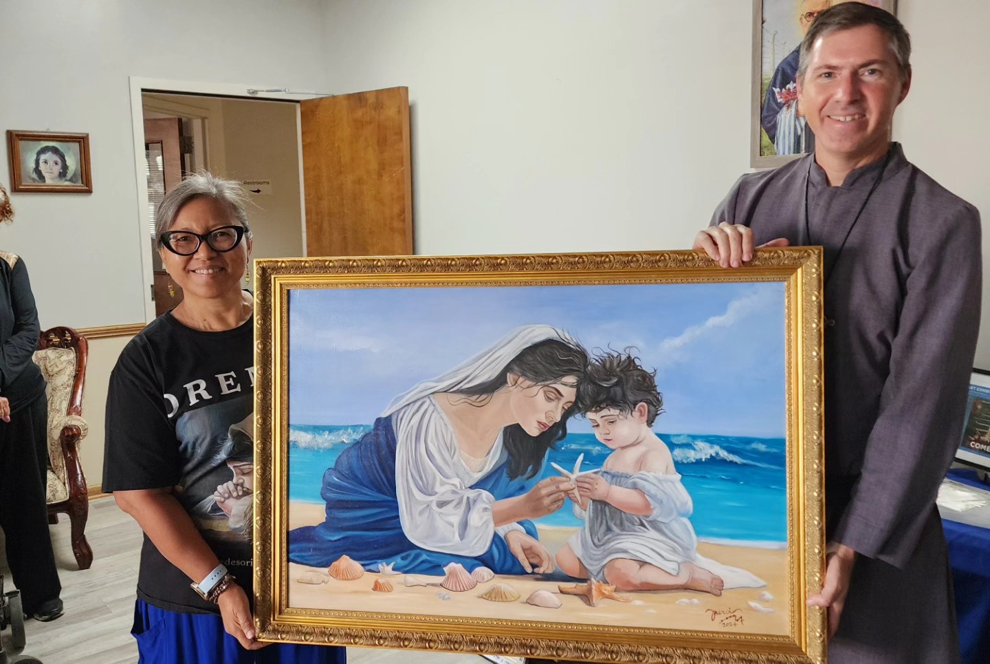 Another painting from the Come and See exhibit was delivered to its final home with Fr. Brady Williams, SOLT, who will hang it in the Novitiate House. He shared that when the novitiates enter, the first thing they will see is this moving painting of Mother Mary with the Child Jesus.